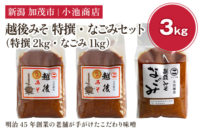 明治45年創業の老舗が手がけたこだわり味噌 越後みそ 特撰・なごみセット 3kg《越後みそ 特撰 2kg・なごみ 1kg》自然発酵の味噌 味噌 保存料不使用 創業100年以上の老舗 長期熟成 加茂市 小池商店