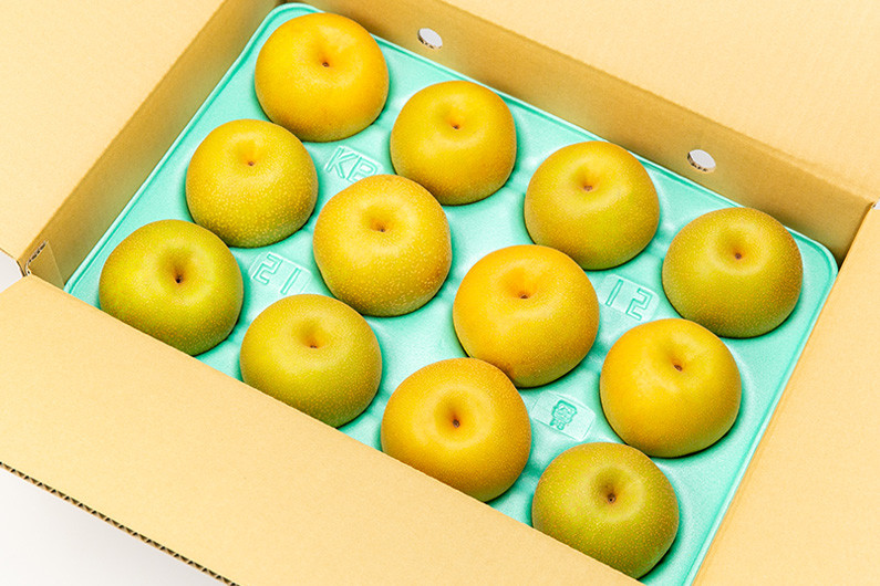 箱を開けた瞬間の甘い香りと、圧倒されてしまう程の存在感がある果実の大きさが人気の和梨です。