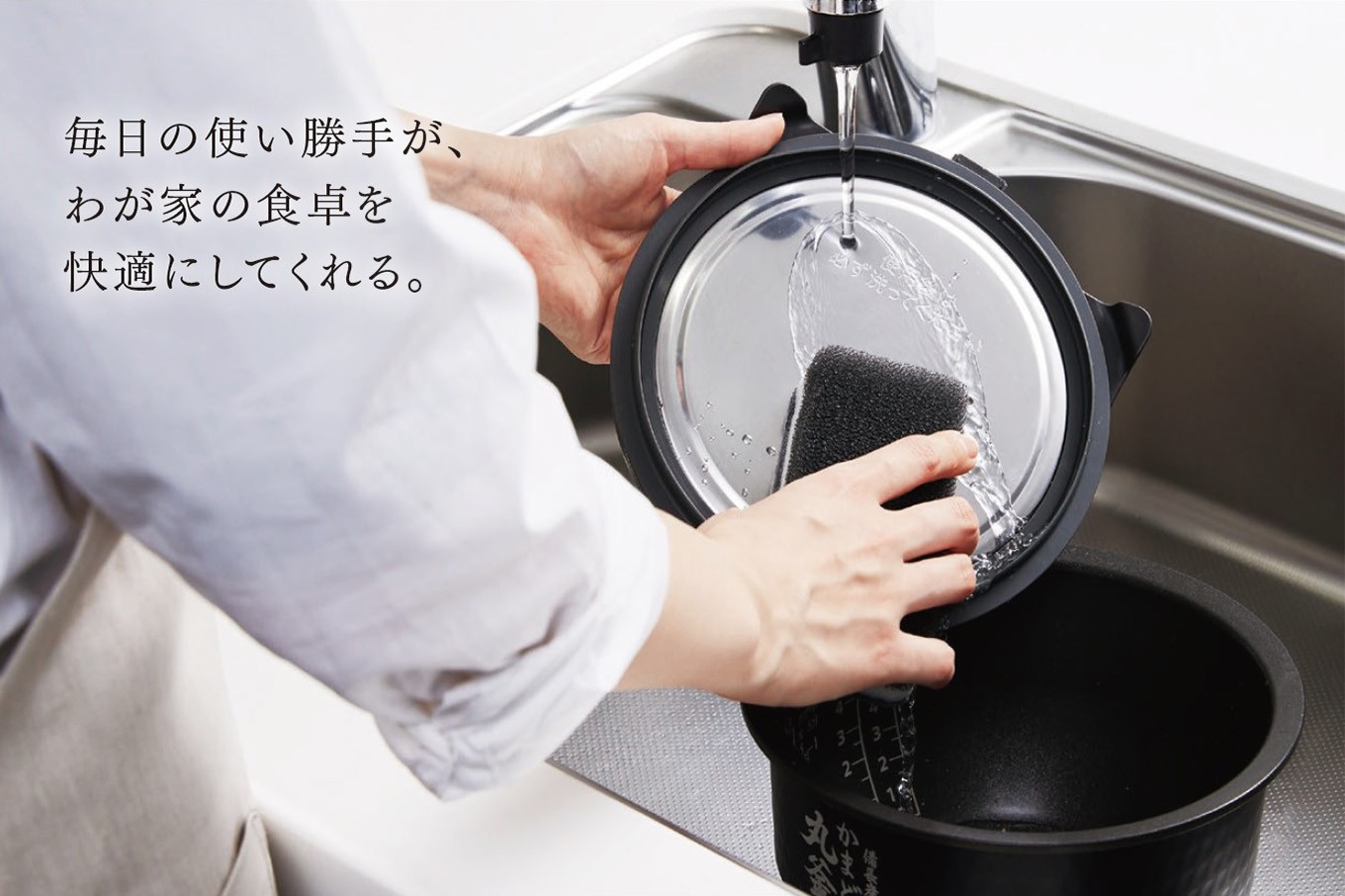 また、毎日洗うパーツは内釜と内ぶたの2点のみ。内ぶたのステンレス部分には、水切れがよいエンボス加工を採用し、食器洗い乾燥機にも対応。