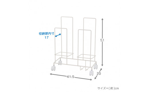 容量 | 【サイズ】 約幅41.5×奥行20×高さ51(cm) 【重さ】 約1.6㎏ 【耐荷重】 10㎏ 【素材】 本体:スチール(粉体塗装) |
