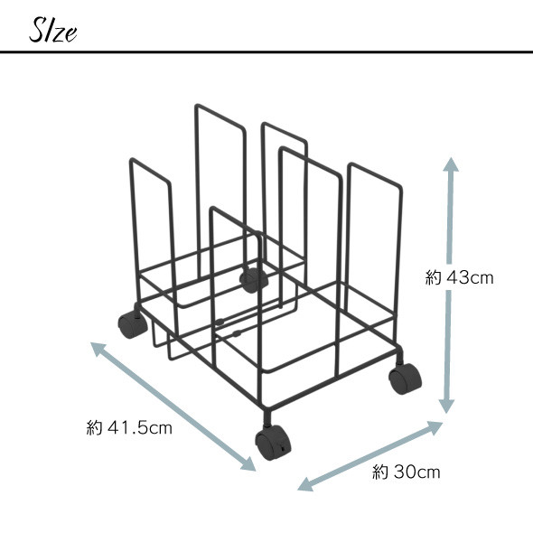 | 容量 | 【サイズ】 約幅41.5×奥行30×高さ43(cm) 【重さ】 約2.0㎏ 【耐荷重】 15㎏ 【素材】 本体:スチール(粉体塗装) |