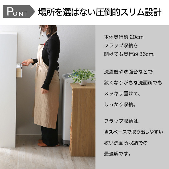 奥行き20cmの超薄型!脱衣所・洗面所を選ばず、タオルや着替えなどが収納可能。