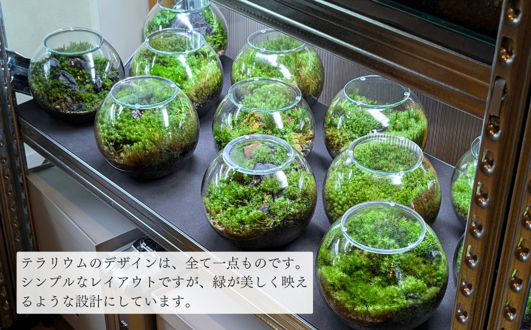 世界に一つだけの小さな自然を、あなたにお届け テラリウム 14cm スフィア(苔5種類) 苔リウム 苔テラリウム インテリアグリーン 観葉植物 雑貨 新潟県加茂市 テラリウム専門ショップ -Terraria-