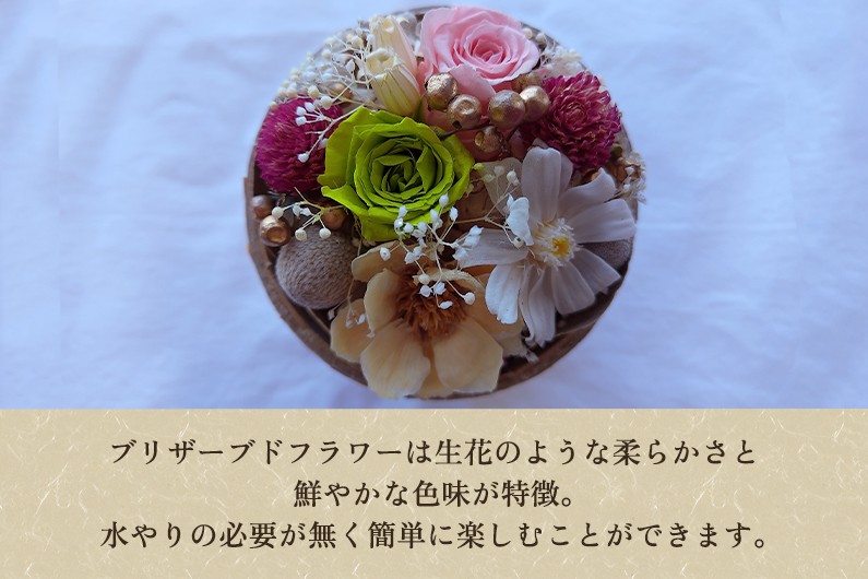 花火玉を割ると打ち上げた花火を思い出させてくれるような華やかなブーケ(ブリザーブドフラワー)が現れます。