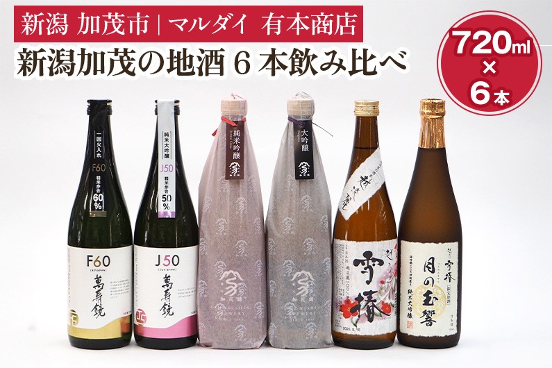 加茂市の3蔵元「マスカガミ」「加茂錦酒造」「雪椿酒造」のお酒の詰め合わせ。 新潟加茂の地酒6本飲み比べ(マスカガミ・加茂錦・雪椿)720ml×6本 日本酒 お酒 セット 新潟地酒 加茂市 マルダイ有本商店