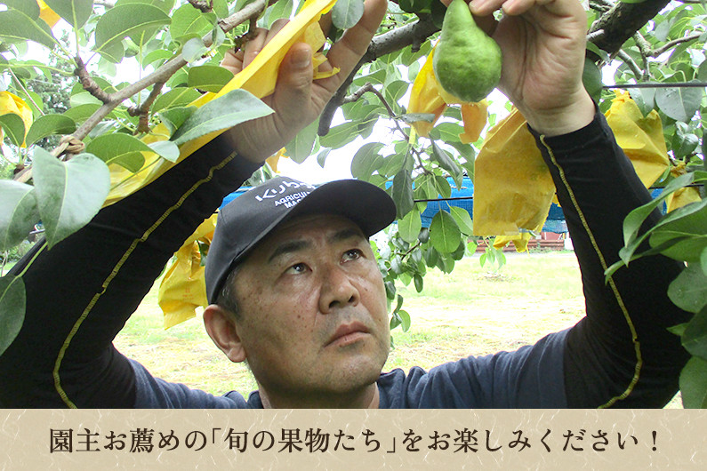 有機肥料を使用したこだわりの土で育った自慢の和梨。酸味の少ない柔らかい果肉。