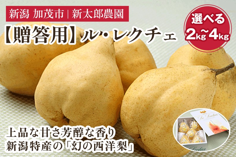 新潟特産の「幻の西洋梨」。上品な甘さ芳醇な香り。ラ・フランスより柔らかな果肉。 【2026年先行予約】【選べる数量】【贈答用】幻の洋梨 ル・レクチェ 2kg(5~7玉) 3kg(7~11玉) 4kg(9~14玉) 《12月上旬から順次発送》 化粧箱入り 果物 フルーツ ギフト 贈答 加茂市産ル・レクチェ 梨 西洋梨 加茂市 新太郎農園