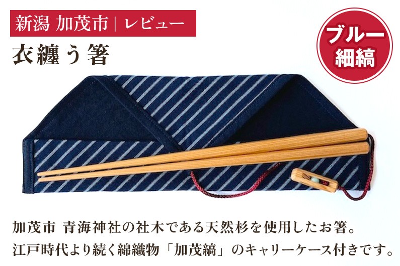 加茂市青海神社の天然杉を使用。加茂縞のケースが付いた、職人手作りの真心込めた箸。 衣纏う箸 ブルー細縞(キャリーケース付き) おはし 木製 杉製 カトラリー 食器 縁起物 ギフト プレンゼント 加茂市 株式会社レビュー
