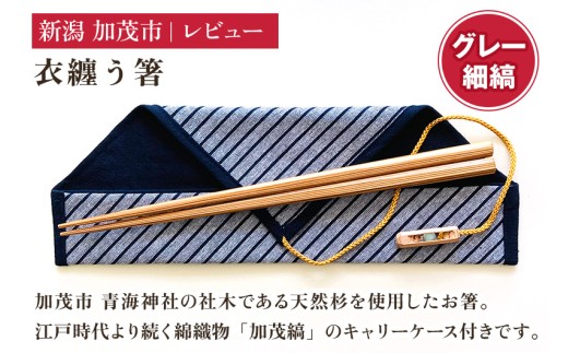 衣纏う箸 グレー細縞(キャリーケース付き) おはし 木製 杉製 …