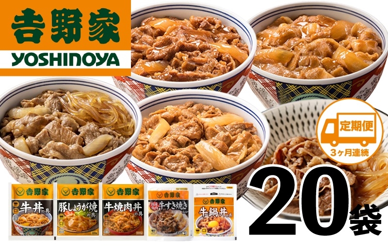 【定期便 3ヶ月】吉野家 人気5種20袋バラエティセット(冷凍)
