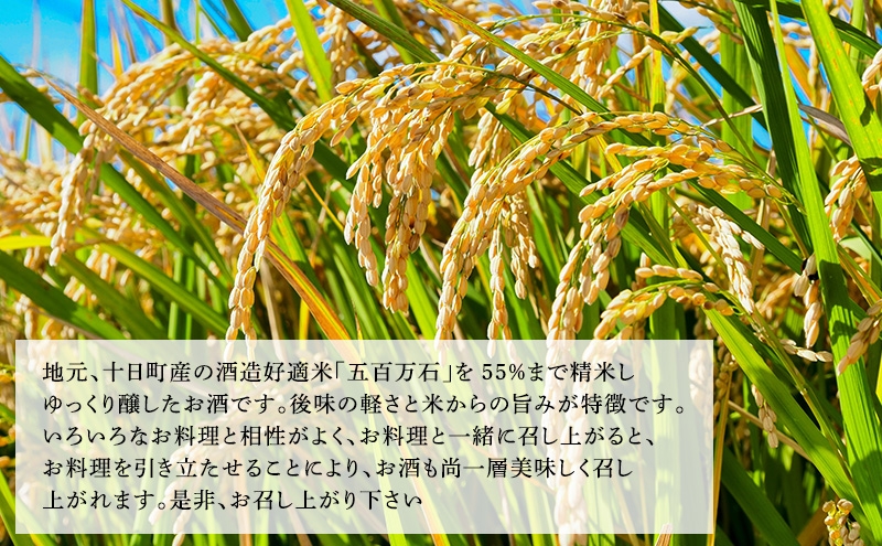 地元、十日町産の酒造好適米「五百万石」を55%まで精米しゆっくり醸したお酒です。後味の軽さと米からの旨みが特徴です。いろいろなお料理と相性がよく、お料理と一緒に召し上がると、お料理を引き立たせることにより、お酒も尚一層美味しく召し上がれます。是非、お召し上がり下さい