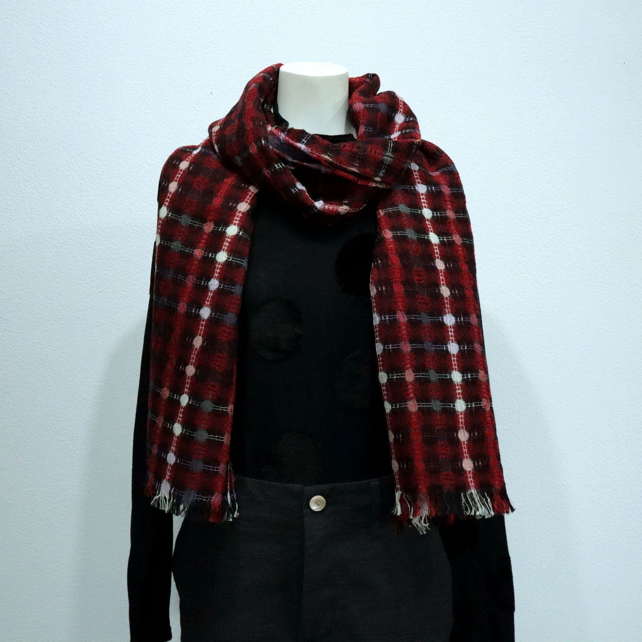 「チェック柄」と「ドット柄」どちらも楽しめる両面使いのストールです ストール リバーシブル C/#赤 デザイン チェック柄 ドット柄 冬 レディース メンズ ショール マフラー ファッション おしゃれ 日本製 肌に優しい 敏感肌 暖かい 暖か 可愛い 防寒 冬物 贈り物 祝い 誕生日 卒業 プレゼント ギフト クリスマス 新潟県 見附市