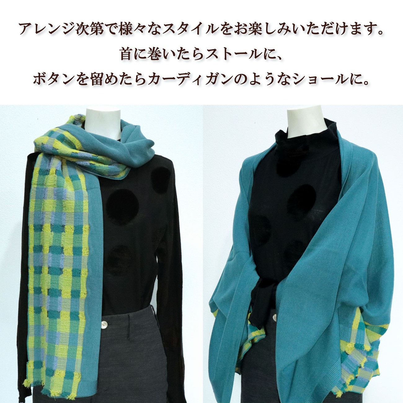 ボタンを留めたらカーディガンに。デザイン性と機能性を兼ね備えたドッキングストール ストール ドッキング アレンジ C/#イエロー系 冬 レディース メンズ ショール マフラー ファッション おしゃれ 日本製 肌に優しい 敏感肌 暖かい 暖か 可愛い 防寒 冬物 贈り物 祝い 誕生日 卒業 プレゼント ギフト クリスマス 新潟県 見附市