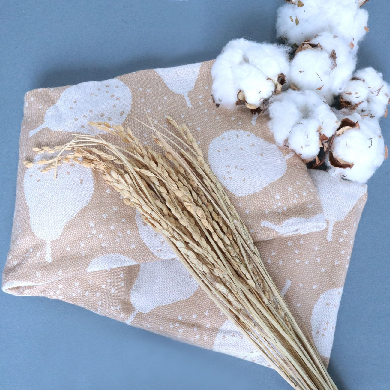 ルレクチェをイメージしたテキスタイルで作られたカバーはオーガニックコットン100%。