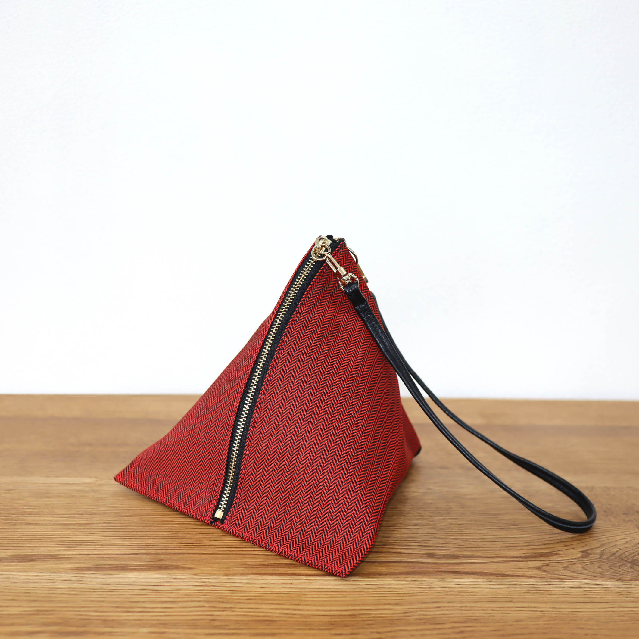 型崩れや劣化が少なく、汚れに強く、長くお使いいただけるバッグです。 △BAG small C/#レッド ヘリンボン