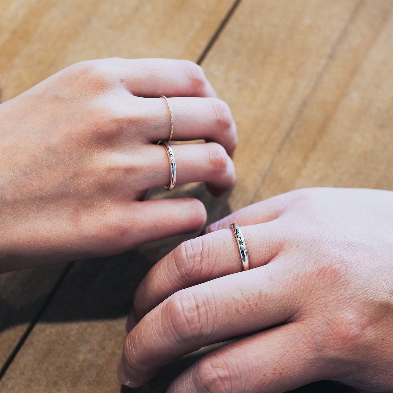 ツインダイヤモンドをセッティングすることで、お互いの繋がりを感じられる特別なペアリングとなります。