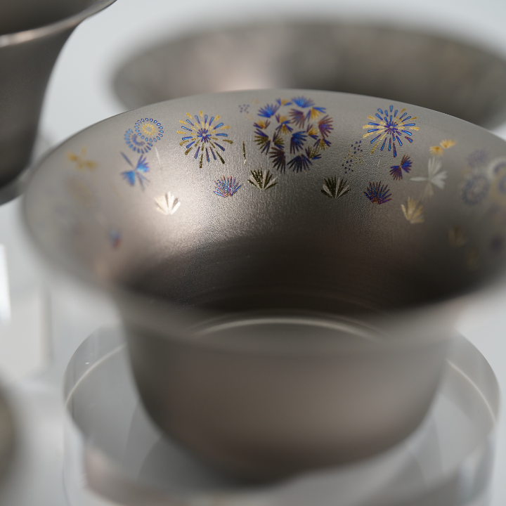 おちょこを肴に呑む。 酒器で感じる、美しい景色・自然。 純チタン製お猪口 「長岡花火」