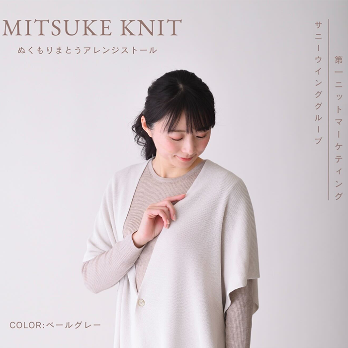 見附市の伝統あるニット技術と、介護の現場から生まれた使いやすさが融合したストール ぬくもり纏うアレンジストール(ペールグレー)