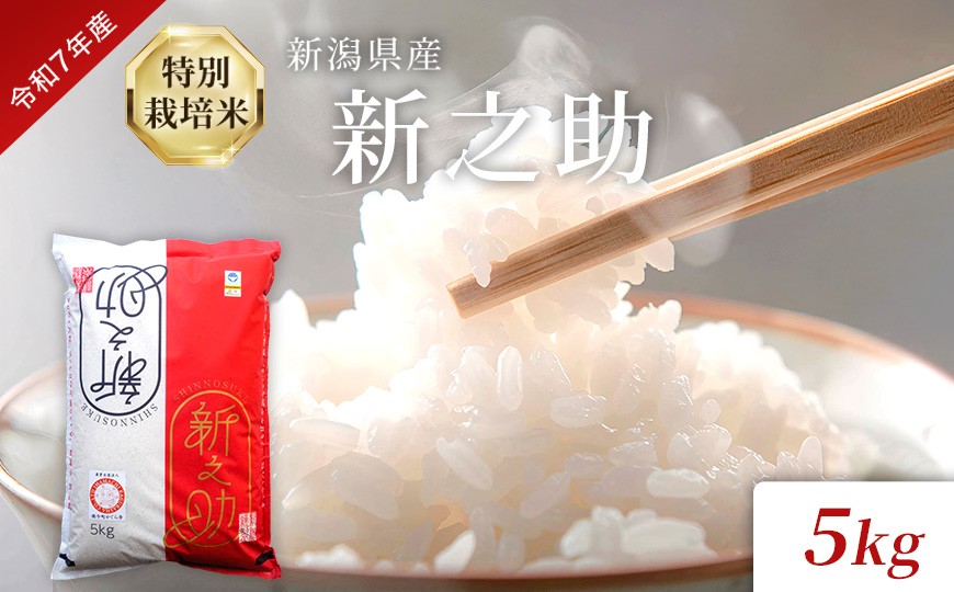 新潟県の新品種 新之助 「県認証米(特別栽培米)」 令和7年度産 新潟県産特別栽培米新之助(白米)5kg