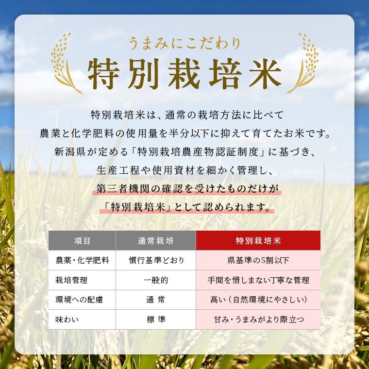 越後平野は寒暖差が大きいため美味しいお米の産地 「県認証米(特別栽培米)」 令和7年度産 新潟県産特別栽培米新之助(玄米)5kg