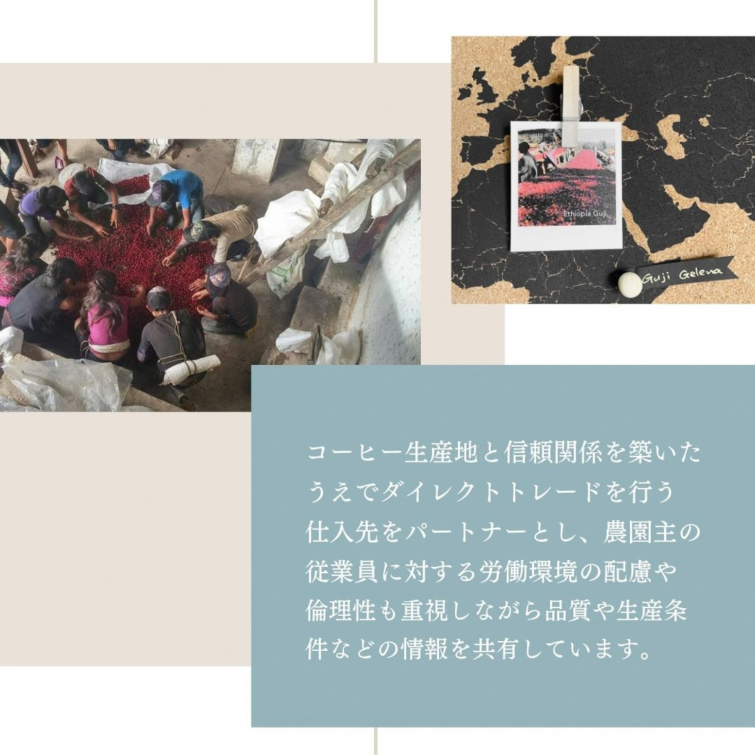 また、高品質なコーヒー生産につながる持続可能性と、ストーリー性を重視し、コーヒー豆のセレクトを心がけています。