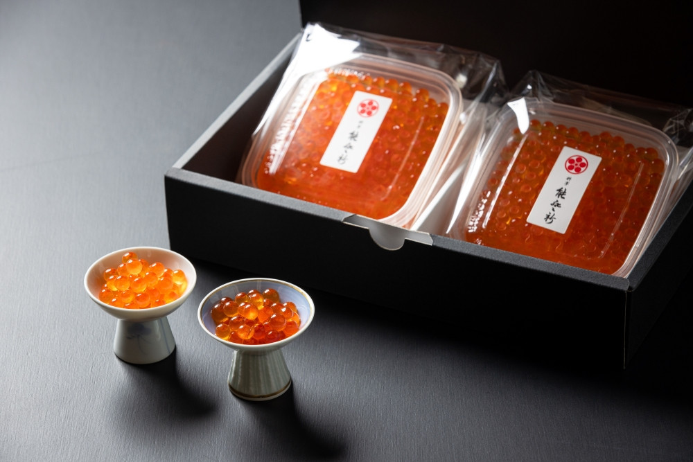 出汁のきいた醤油はらこ(いくら)と、濃厚な味わいのはらこの味噌漬けを食べきりサイズの小分けにてご用意致しました。料亭の味をぜひご家庭でもお楽しみ下さい。