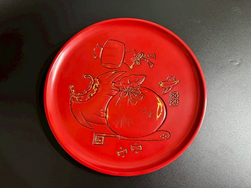 新潟県村上市が誇る伝統的工芸品、村上木彫堆朱の丸盆です。
