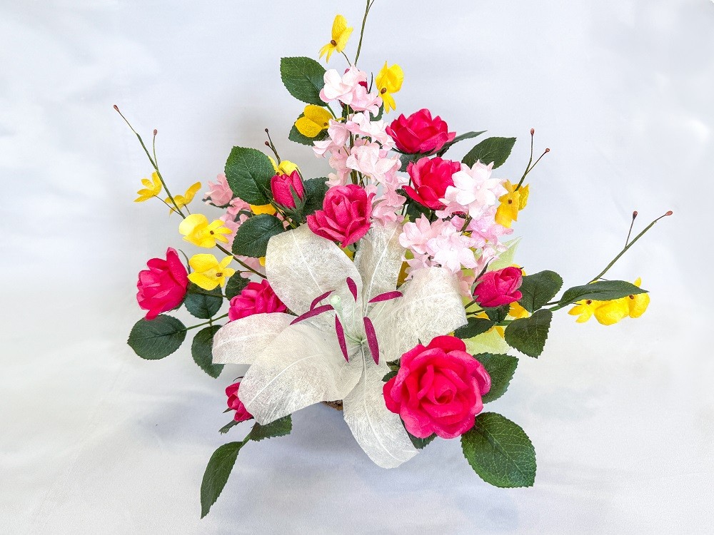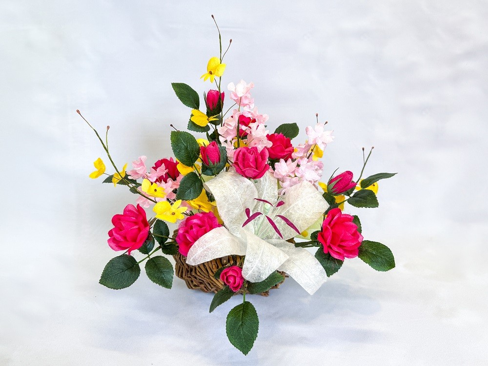【まゆ玉から生まれる花 まゆ花(別名:シルクフラワー)】まゆ花ギフト かご花アレンジメント 1004003