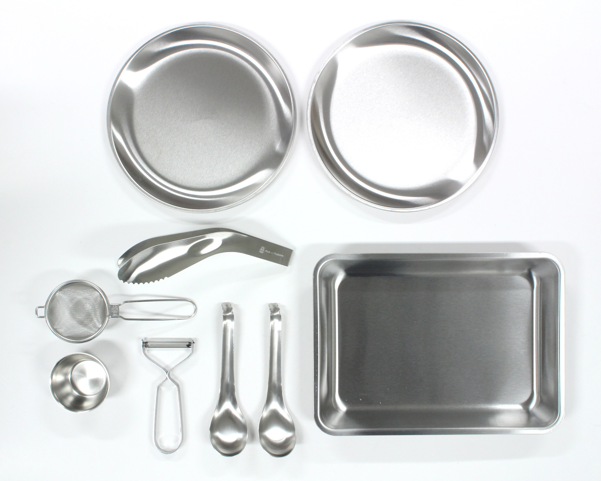 | 容量 | ① レンゲ 約16cm×2 材質:18-8ステンレス 仕上げ:マット仕上げ ② ラウンドトレー約Φ19.5×H1.5cm×2 材質:ステンレス 仕上げ:マット仕上げ ③ 茶こしセット ・茶こし/約16.5cm×1 材質:18-8ステンレス 仕上げ:つやなし ・受け皿/約6.2×H3.6cm×1 材質:ステンレス 仕上げ:マット仕上げ ④ ピーラー約W5.5×H12cm×1 材質:ステンレス 仕上げ:マット仕上げ ⑤ トング約18.4cm×1 材質:ステンレス(SUS821L1)仕上げ:マット仕上げ ⑥ 深型トレー約W25.3×D18.3×H3.6cm×1 材質:ステンレス 仕上げ:マット仕上げ |