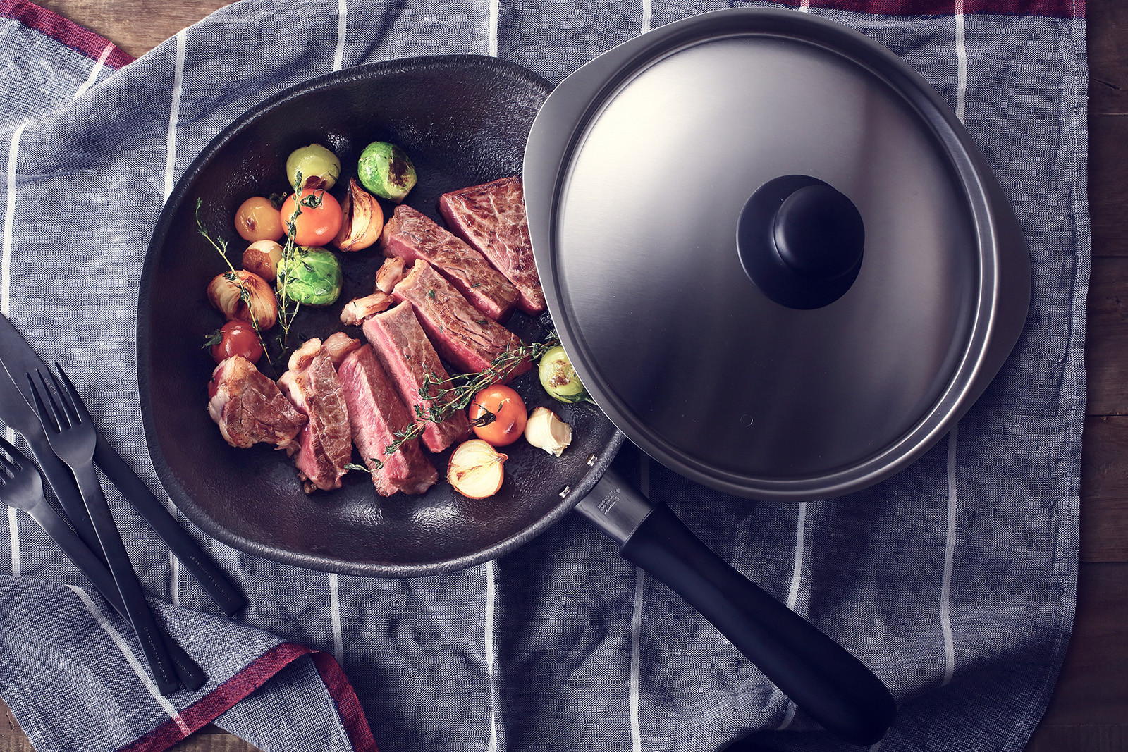 フタを回転させると本体と隙間ができるので、蒸気抜きやソースの取り分けが簡単にできます。
