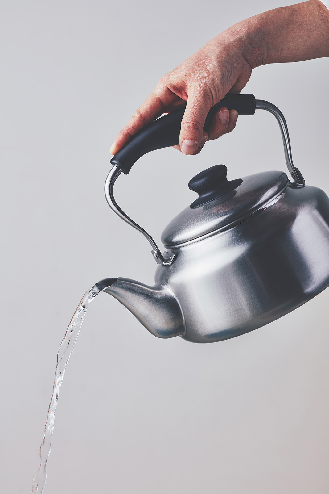 ケトルは注ぎやすさを考慮したハンドル形状と、お湯が早く沸くように底広に設計された本体形状が特徴です。