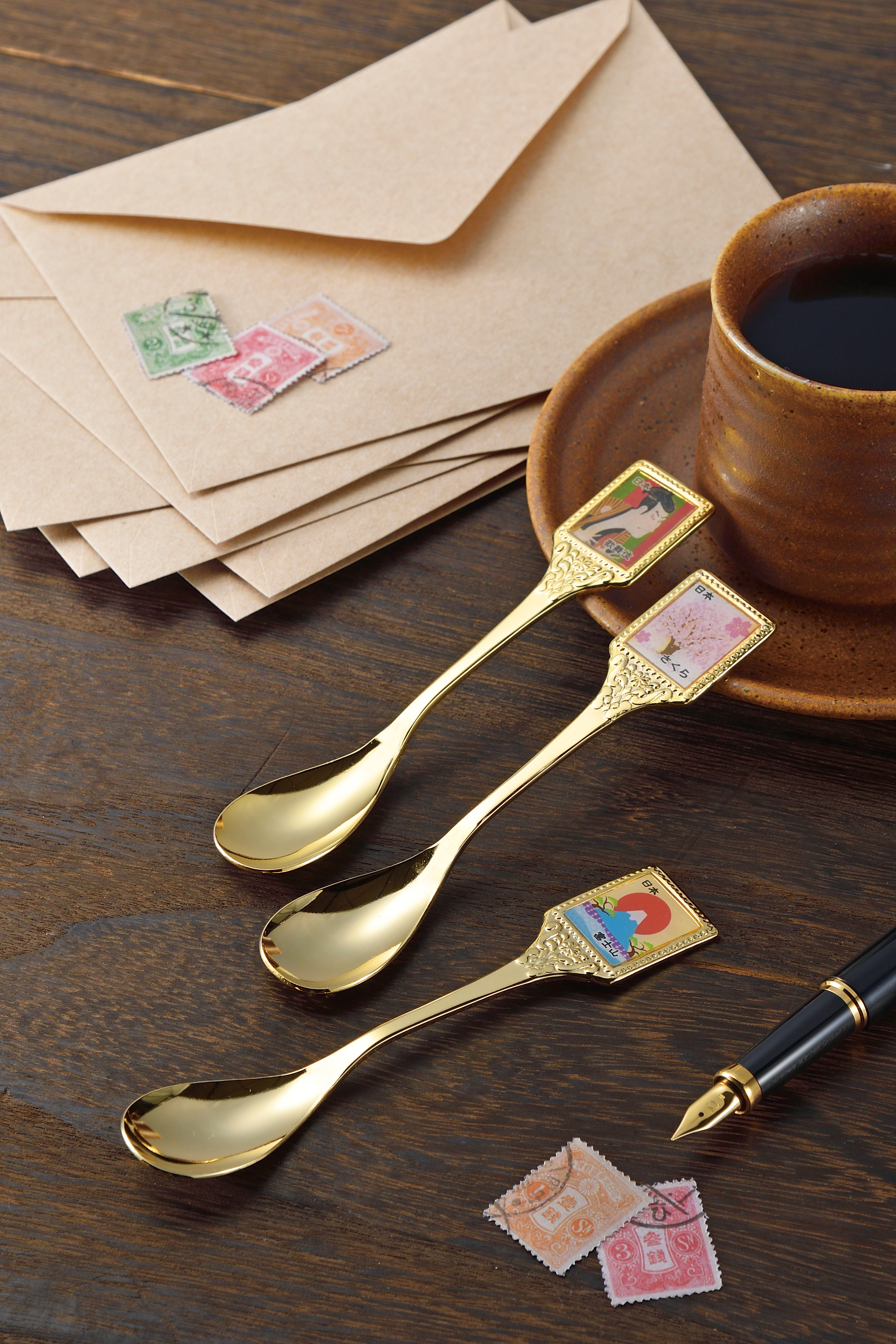 金属加工で知られる新潟県燕市で製造された商品に、日本各地の観光名所等を切手にあしらったスプーンです。