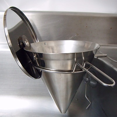 | 容量 | ■内容量/製造地 シンクダストコーナーボックス ・本体…1個 (直径14.5cm深さ15cmの円錐形) ・蓋…1枚 (直径15cmの浅蓋) ・取付脚…1組 (吸着盤付) ・ストレーナー…1個 ・チビたわし…2個 ・吸着盤…2個 (取替用) ・取扱い注意事項と設置方法の図解入の説明書 1通 製造地:新潟県 ■原材料 本体18-8ステンレス/脚18-8ステンレス/蓋18-0ステンレス/つまみ18-0ステンレス/ストレーナー18-0ステンレス/吸着盤:塩化ビニール |