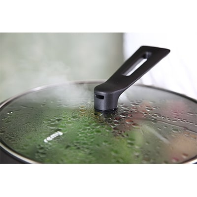 本体は軽く、熱伝導率の高いアルミ構造によって作られているのでスピードクッキングはお手のもの。食材に均一に火が通り、どんな料理も手早く調理ができます。