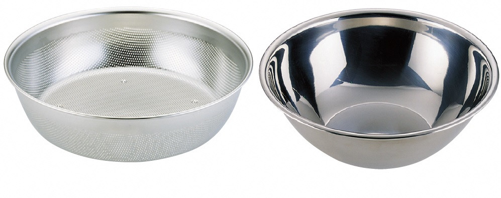 使いやすさと美しさにこだわり、職人の手仕事で丁寧に仕上げられた、日本製ならではの上質な調理道具です。 【ステンレスボウル】 ●持ちやすく、洗い易く、シンプルな形状の中に使いやすさのための工夫が詰まっています。ざる、プレートとの併用で用途も広がります。 ●従来のボウルの倍の0.8㎜の板厚があります。スピニング加工することにより、底や縁は厚みを残して安定感をもたせ、側面は薄く延ばすことで軽さを出しました。 ●持ちやすく使いやすいよう、角度をつけました。巻き込みがないので、汚れがたまらず清潔です。 【ステンレスプレート】 ●単体でお盆として使う事はもちろん、ボウルの蓋として使えばラップが不要になり、ボウルを重ねて作業スペースを確保する、冷蔵庫内での食材の保存容器としても焼くに立ち、ざる、ボウルとのセット使いで用途が広がります。 ●0.7㎜の板厚があります。丈夫で、安定感のある厚みです。 ●持ちやすく使いやすいよう、角度をつけました。巻き込みが無いので、汚れがたまらず清潔です。 【ステンレス丸ざる】 ●水切りが抜群に早く楽にできるざる。米を研ぎ水を切る、野菜の水を切る、麺類の湯を切る等の作業が思いのまま。粉ふるいにも。 ●アミは綾織りなので従来のざるより丈夫で、パンチング材のざると比べ、格段に水切れが良いです。 ●フチは1枚の板をくり抜いて作られています。斜め内側に傾斜のついた平縁タイプです。縁のつなぎ目が無いので汚れがたまらず洗いやすいです。 ●足つきなので、水切りが良く清潔です。より早くスムーズに水切りしたいときに、ボウルの縁に足を引っかけて傾斜をつける、という使い方もできます。 【ステンレス浅型ざる】 ●ボウルの上にのせて出汁をとる時に用います。ボウルにしっかりはまる盆ざるのように使えます。ざるがぐらつかず安定し、出汁の材料が出汁に浸かってしまう事が無いので最後の一滴までしっかりと良い状態で漉すことができます。晒しの布巾を敷いて使うと、より透明度の高い上質な出汁をご家庭でとることができます。 ●丸ざると同様、綾織りのアミを使用しているので、丈夫で水切れが良いです。 ●縁のつなぎ目が無いので、汚れがたまらず洗いやすいです。