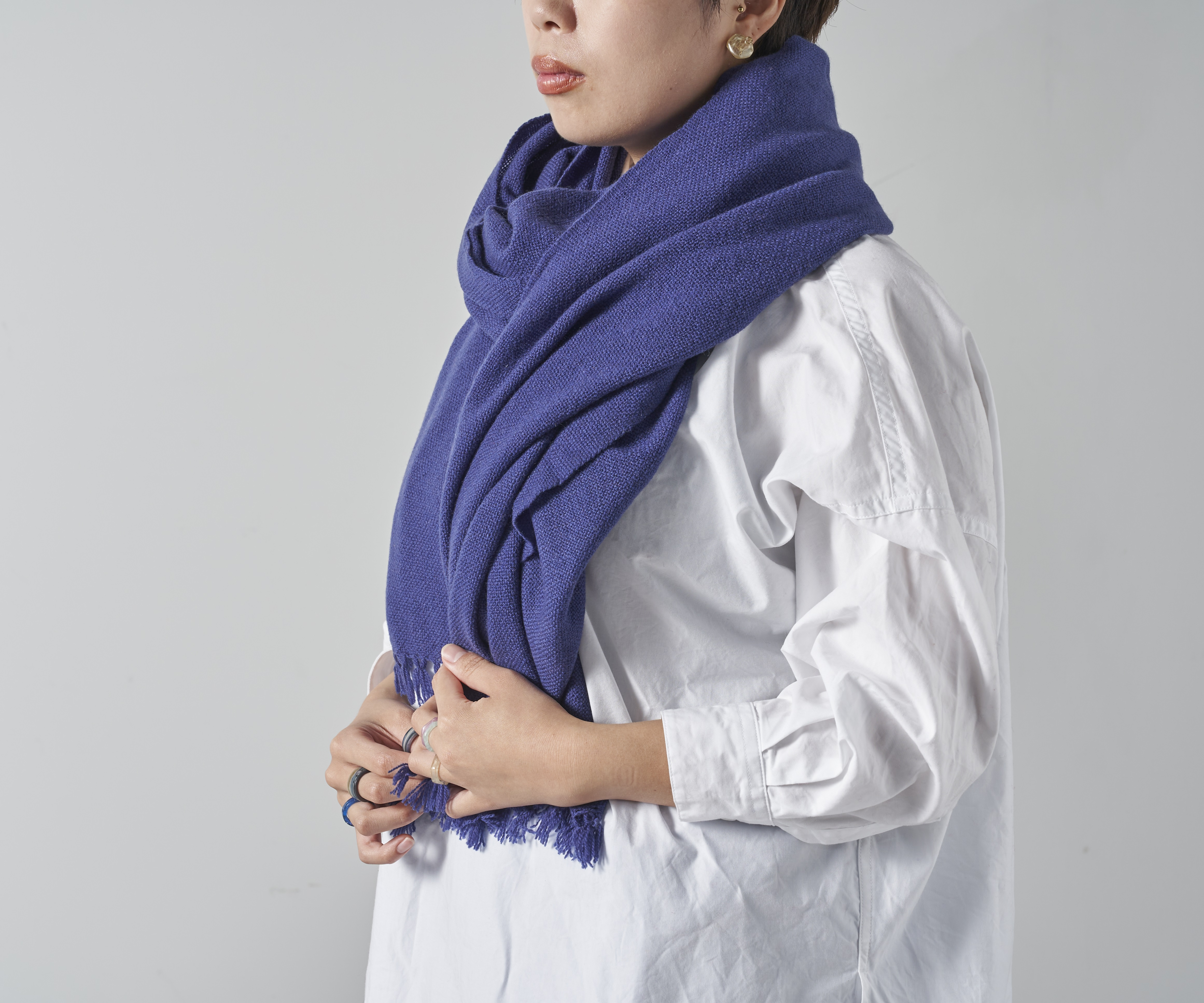 トム・ソーヤ(障がい者作業所)ではカシミア100%の大判ストールを手織りで作りました。肩に掛けたり、マフラーとしても旅行や冷房対策として四季を通じてご使用できます。