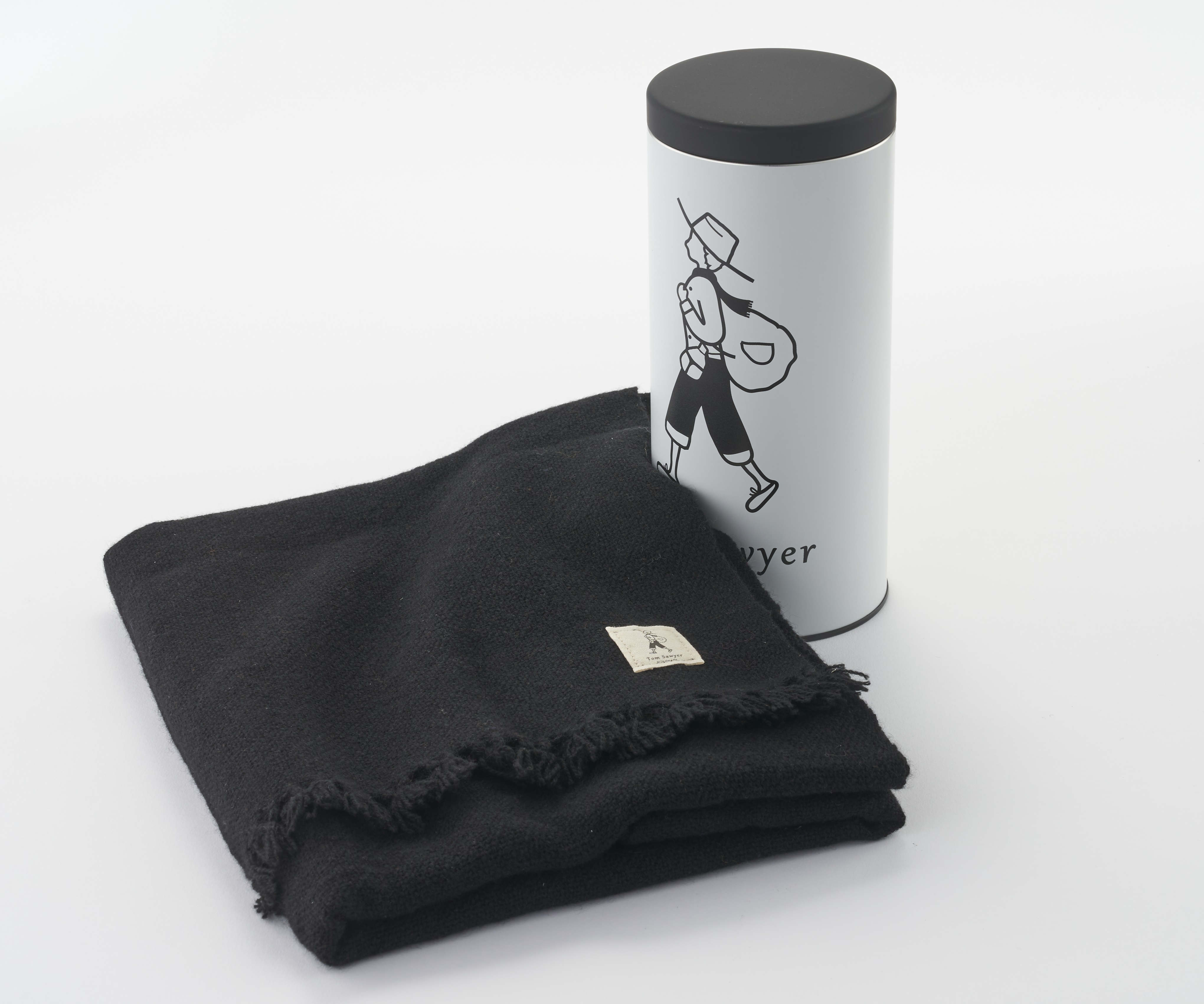 カシミア手織りストール(ブラック)・白缶 FCCS100006