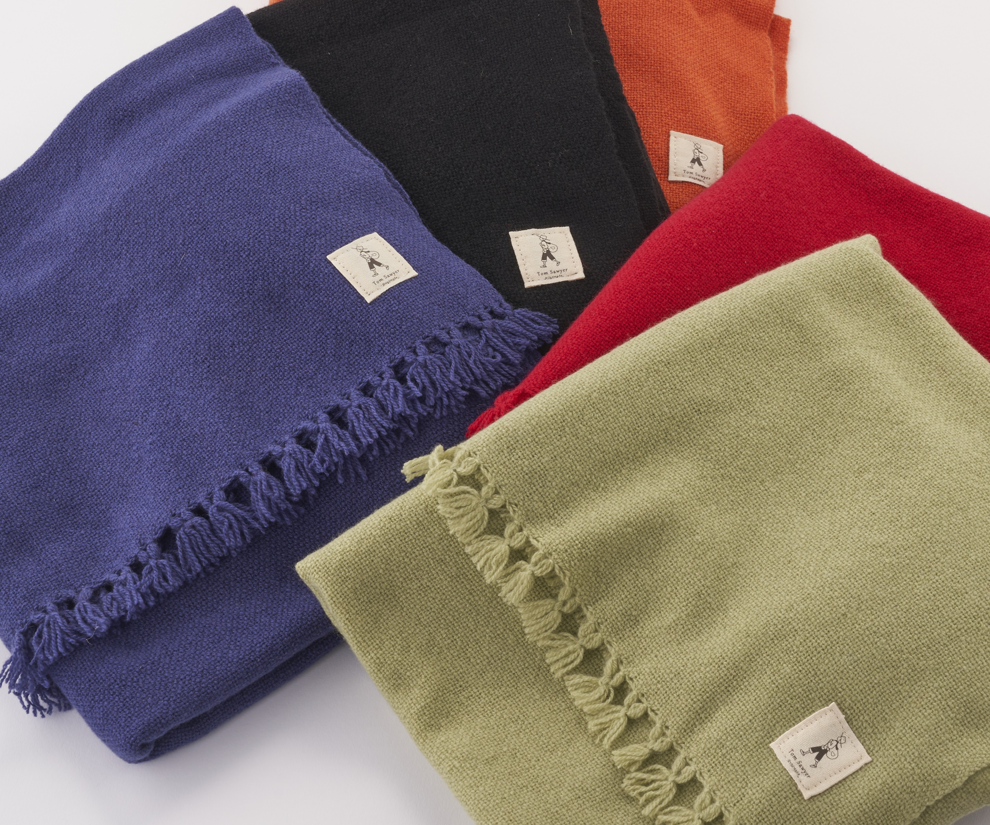 トム・ソーヤ(障がい者作業所)ではカシミア100%の大判ストールを手織りで作りました。肩に掛けたり、マフラーとしても旅行や冷房対策として四季を通じてご使用できます。