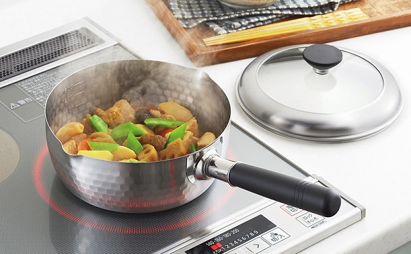 本体外側には槌目加工が施されており、表面積が広くなるため熱効率がアップしています。