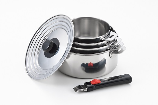 着脱ハンドルでコンパクトに収納できる鍋セット。
