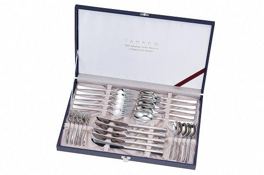 ご家族やご友人と特別なディナーを楽しむことができる5人用のカトラリーセットです。鏡面仕上げで磨きの美しさを実感できます。輝きのある直線的なシャープさが特徴の、シンプルながらもメリハリのあるフォルム。音楽を奏でるような、リズミカルなラインをイメージしました。程よい厚みをもたせた立体感が側面の美しさを際立たせます。山崎金属工業株式会社はノーベル賞創設90周年の晩餐会のカトラリーを担当しており製造する商品の品質を保証します。