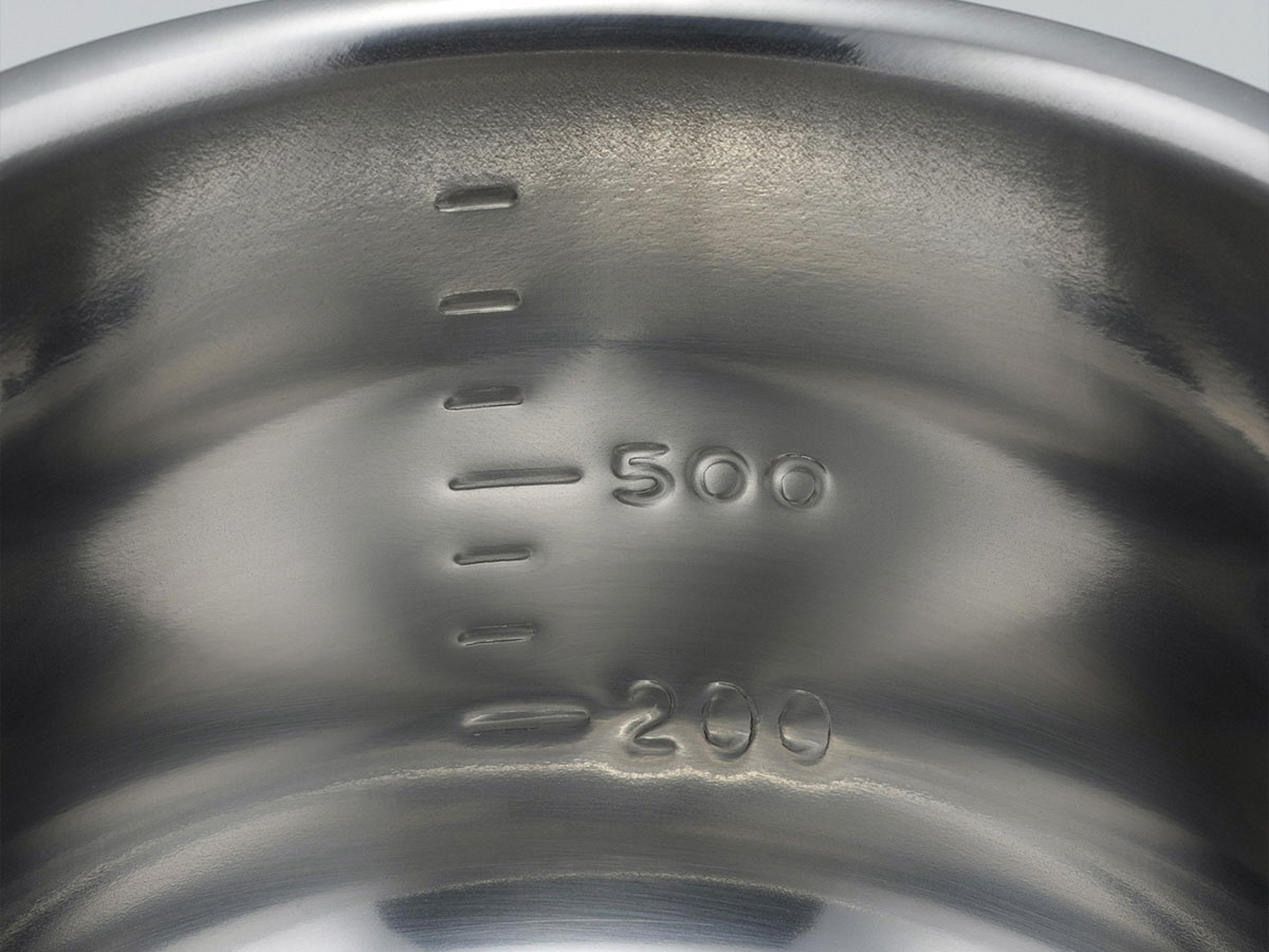 どこから注いでも尻漏れしにくいフチ形状。食洗機で洗えるからお手入れカンタン!200~800mlまで100ml単位の目安目盛り付きで計量カップとしても便利です。オールステンレス製でお手入れカンタン。新潟県燕市で製造しています。