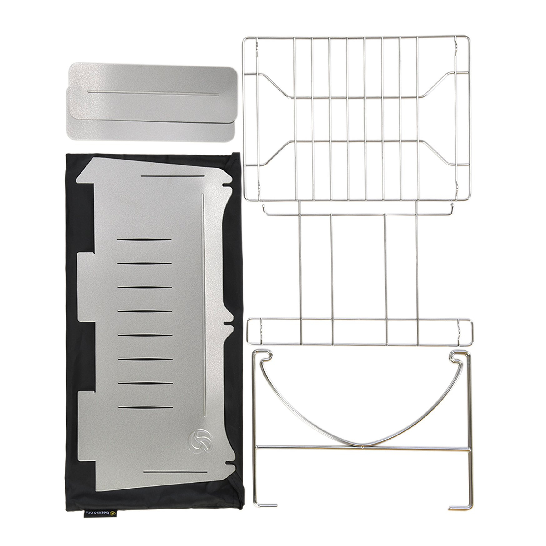 | 容量 | 【サイズ】 [焚き火台TABI(グリルエクステンション付き)]使用時:237×360×170mm、収納時:178×360×15mm [TABI収納ケース]約400×200mm [ULHibasami]全長:約330mm 【重量】 [焚き火台TABI(グリルエクステンション付き)]約478g [TABI収納ケース]約160g [ULHibasami]約70g 【材質】 [焚き火台TABI(グリルエクステンション付き)]本体:チタニウム・18-8ステンレス、収納袋:ナイロン [TABI専用収納ケース]帆布(パラフィン加工)、ポリエステル [ULHibasami]アルミニウム、ステンレス、バネ材 【耐荷重】 [焚き火台TABI(グリルエクステンション付き)]火床:約15kg、網:約5kg、グリル:約3kg 【付属品】 [焚き火台TABI(グリルエクステンション付き)]収納袋 |
