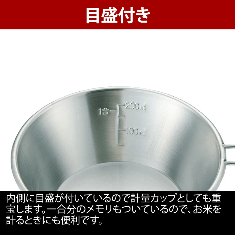 日本の風情が感じられる富士山と桜がモチーフの和風デザインシェラカップ2個セット。スタッキングや目盛など基本性能は踏襲されており使いやすいシェラカップです。