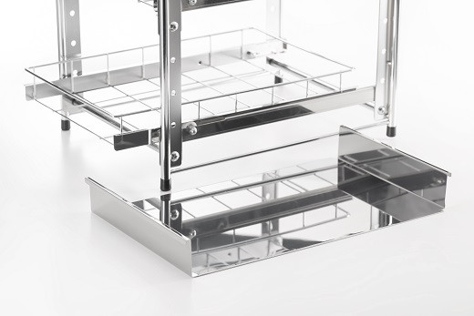 燕三条で、ステンレス金属加工の職人によって作られたステンレス製引き出しラック。