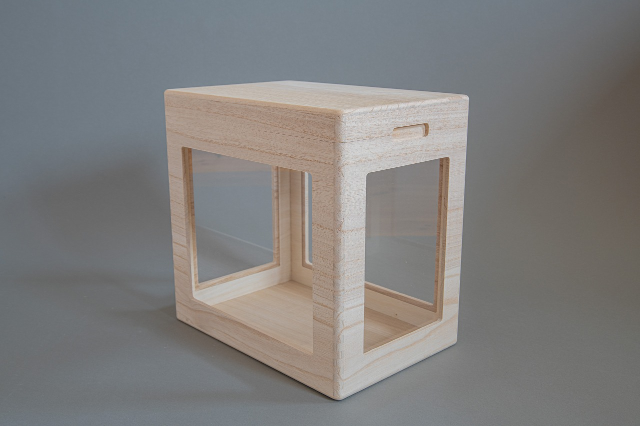 ・「中がみえる桐製くつ箱」は4側面に大きなアクリル窓を付けることによって一目で中を確認することができますので、収納だけでなく、鑑賞用としてもご使用いただけます。