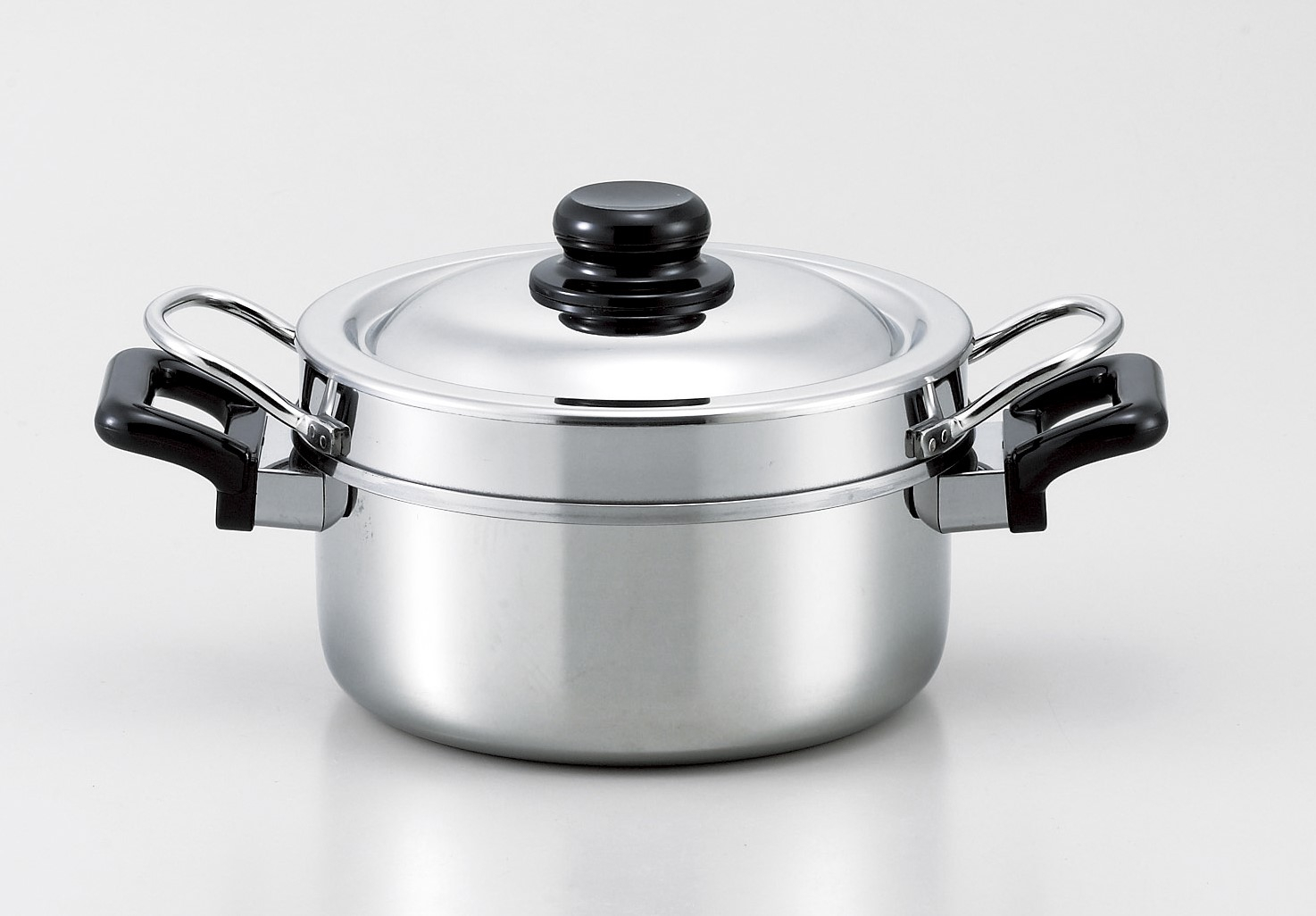 | 容量 | 容量:内鍋/2.5L、外鍋/3.7L 材質:内鍋/特殊ステンレス鋼、外鍋/全面三層鋼(18-10ステンレス・軟鉄・18-10ステンレス)0.8mm厚 寸法:内鍋/約21cm×30.7×H10cm、外鍋/約20×34×H12.2cm 重量:総重量約2030g(スタッキング時) 食器洗浄機:非対応 IH対応:100V・200V |
