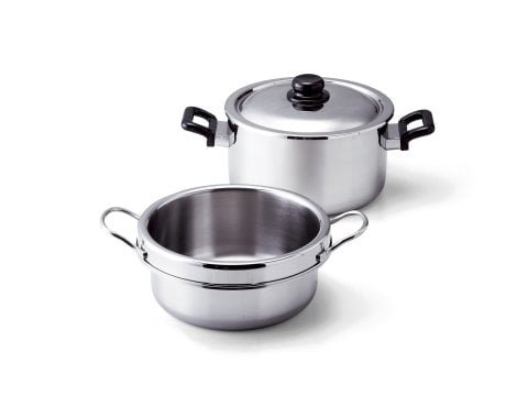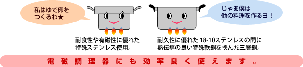| 容量 | 容量:内鍋/4.0L、外鍋/6.0L 材質:内鍋/特殊ステンレス鋼、外鍋/全面三層鋼(18-10ステンレス・軟鉄・18-10ステンレス)0.8mm厚 寸法:内鍋/約25cm×35.2×H11cm、外鍋/約24.5×38.3×H13.7cm 重量:総重量約2600g(スタッキング時) 食器洗浄機:非対応 IH対応:100V・200V |