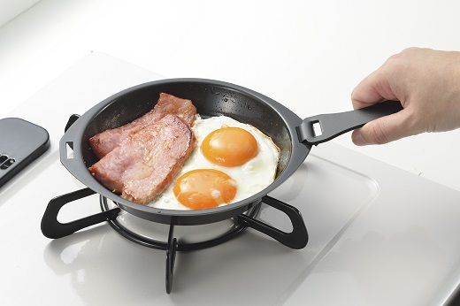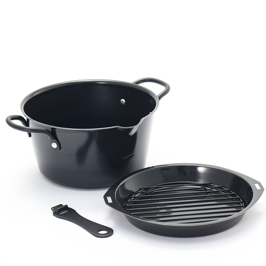 商品名通り本体は揚げ鍋専用鍋ですが、付属しているパンは丸アミを置けば揚げバットになり、丸アミを外せばグリルパンやフライパンとしても使用できるパンになります。多機能パンのハンドルは脱着タイプですので、調理後そのままテーブルにも持って行けます。本体の揚げ鍋専用鍋も20㎝とコンパクトですので、少量の油で揚げ物料理も可能です。