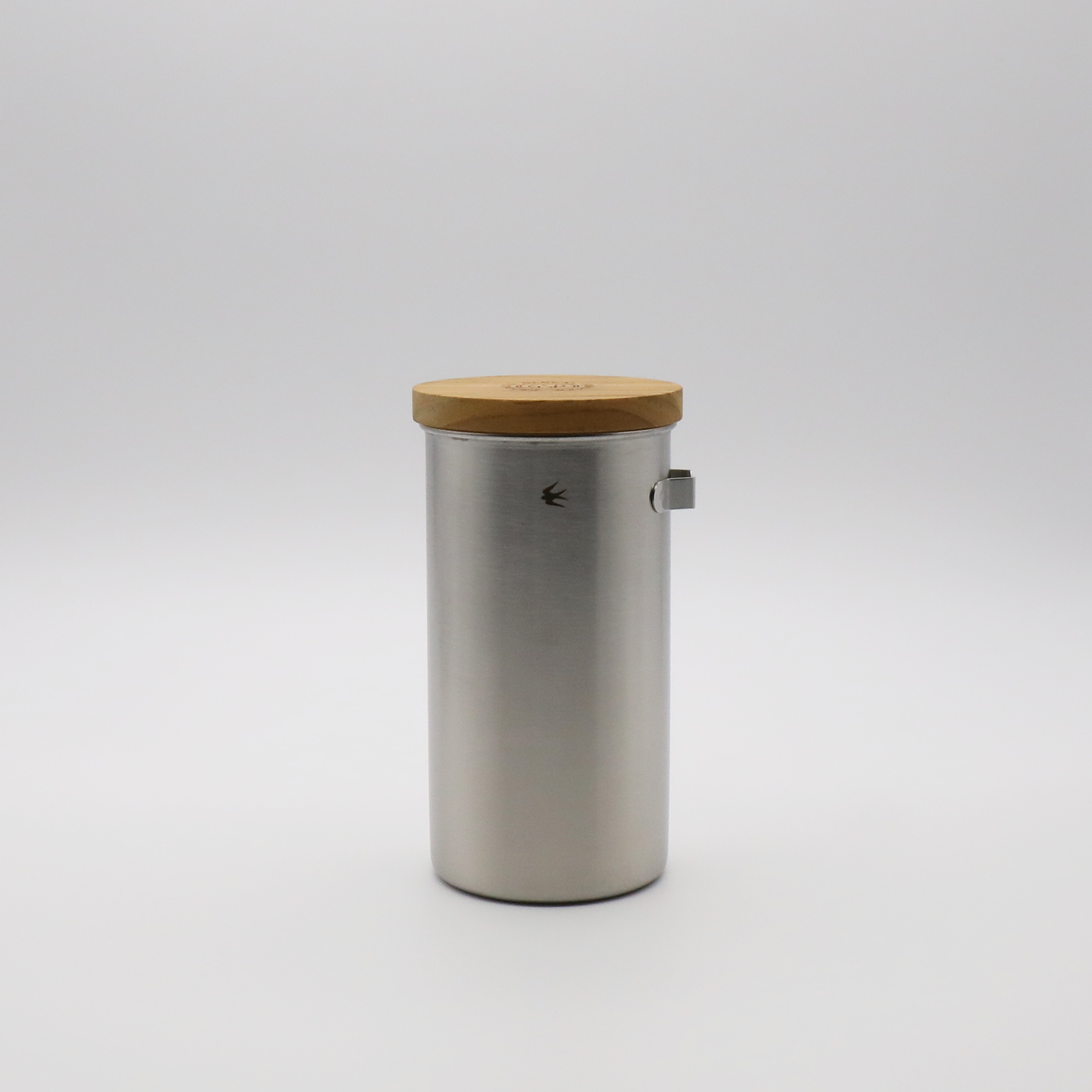金属加工の産地の新潟県燕市で製作されたステンレスボディに艶消しの塗装を施したキャニスターです。 艶ありのツバメのアイコンがワンポイントになります。 蓋の部分は天然木のチーク材を使用。 裏面は樹脂パッキンが付属していますので日常使いでの密封性はあります。 *蓋のチーク材は無垢板、無染色のため木目、白太(白い部分)、節など個体差があります。